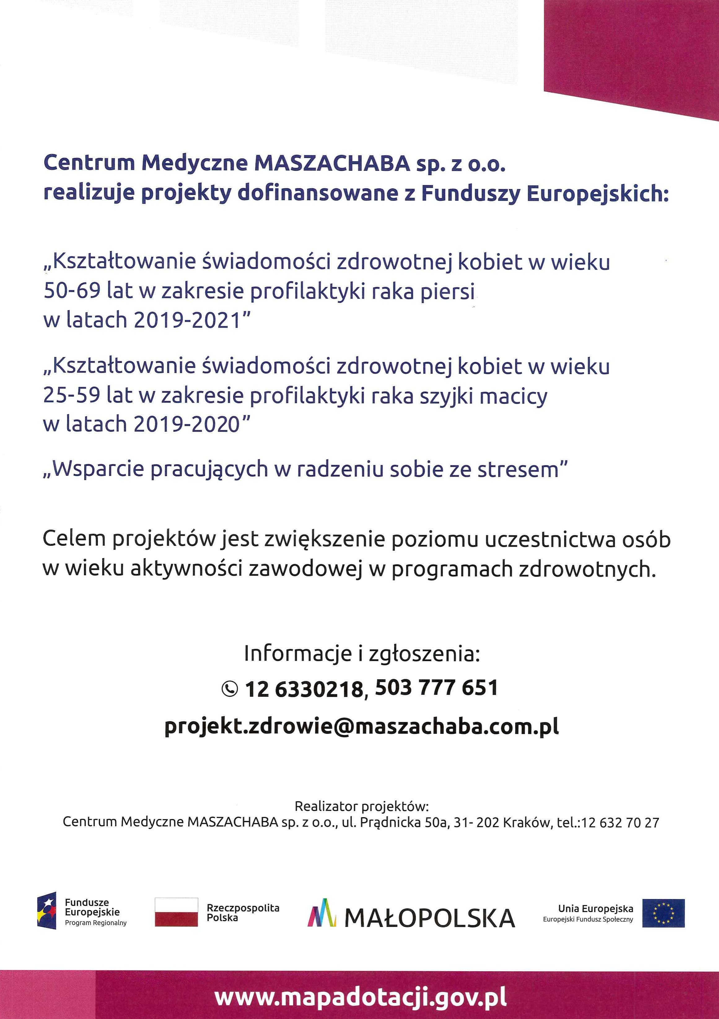 Informacja o projektach, których celem jest zwiększenie poziomu uczestnictwa kobiet w programach zdrowotnych profilaktyki raka piersi oraz profilaktyki raka szyjki macicy.