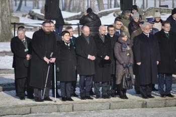 Druga część obchodów 72 rocznicy wyzwolenia obozu Auschwitz-Birkenau miała miejsce pod Pomnikiem Ofiar Obozu na terenie byłego Auschwitz II-Birkenau. Rabini oraz duchowni różnych wyznań chrześcijańskich wspólnie odczytali psalm 42 z Księgi Drugiej Psalmów, a uczestnicy ceremonii złożyli przy pomniku znicze upamiętniające ofiary Auschwitz.