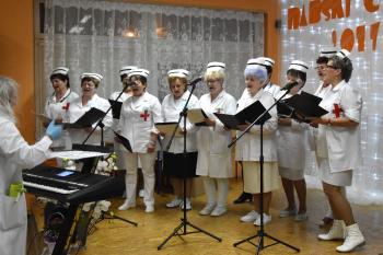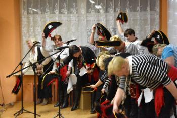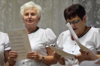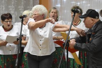 Uczestniczki posilone poczęstunkiem zaprezentowały talenty wokalno-aktorskie. W przyśpiewkach na ludową nutę znalazły się ciepłe słowa dla organizatorów imprezy. Rymowanki były pełne autoironii i dystansu, a skecze pikantnego ale nie dosadnego dowcipu. Bohaterka jednej ze scenek, Bronia, odrzuciła zaloty budowlańca, stolarza i prawnika, aby następnie porwać do tańca wójta Alberta Bartosza. Warto zwrócić uwagę, że ten gest był bezinteresowny a skecz nie miał podtekstów - przedstawiły go mieszkanki Dworów, które leżą przecież na terenie miasta, a nie gminy Oświęcim.