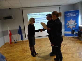 24 marca 2017 r. pedagog szkolny, mgr Anna Kotara z Gimnazjum Gminnego Nr 2 im. KEN w Zaborzu, odebrała z rąk Naczelnika Komendy Powiatowej Policji