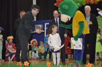 Chwilę później w sali widowiskowej Domu Ludowego w Grojcu przedszkolaki z Zaborza wystąpiły w przedstawieniu o poszukiwaniu wiosny przez rodzinę treflików. Po spektaklu nastąpiło uhonorowanie laureatów i uczestników konkursu plastycznego. Nagrody z pomocą Treflika wręczali dzieciom wójt Gminy Oświęcim Albert Bartosz, jego zastępca Mirosław Smolarek, przewodniczący Rady Gminy Piotr Śreniawski oraz Kazimierz Wierzbicki i Patrycja Wojtkowiak reprezentujący spółkę Trefl SA, która była współorganizatorem i sponsorem "Wiosny treflików".