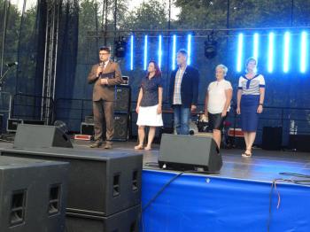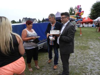 Sobota to już oficjalne obchody Dni Gminy Oświęcim – goście uczestniczyli w otwarciu, podczas którego wójt Bartosz powitał ich na scenie. Zarówno on, jak i burmistrz Passeier w swoich wypowiedziach podkreślali, jak bardzo ważne jest, by utrzymywać bliskie i przyjazne relacje pomiędzy naszymi narodami i że mogą się one opierać właśnie na takich bezpośrednich kontaktach na najniższym szczeblu. Burmistrz Passeier dziękował ze sceny za gościnne przyjęcie i mówił o tym, jak bardzo są dumni stojąc przed mieszkańcami gminy Oświęcim. Ceremonii powitania dopełnił tort z herbami obu gmin, zgodnie podzielony wspólnie przez obu włodarzy, którzy potem rozdawali słodki poczęstunek w tłumie.