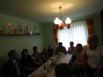 W niedzielny poranek nie pozostawiliśmy naszym przyjaciołom zbyt wiele czasu na odpoczynek. Ostatni wspólny dzień rozpoczął się od poczęstunku w Domu Ludowym w Pławach. Gospodynie – panie z Koła Gospodyń Wiejskich – przyjęły gości wspaniale – własnoręczne wypieki podbiły ich podniebienia i serca. Uśmiechnięte i otwarte, z pomocą tłumaczki pięknie zaprezentowały swoją historię, stroje, ciekawostki, a także zaśpiewały dla swoich gości. Przemiłą wizytę zwieńczyło zaproszenie dla burmistrza Osloss na tegoroczne dożynki i propozycja zostania gospodarzem. Pan Passeier z radością obiecał rozważyć przyjazd.