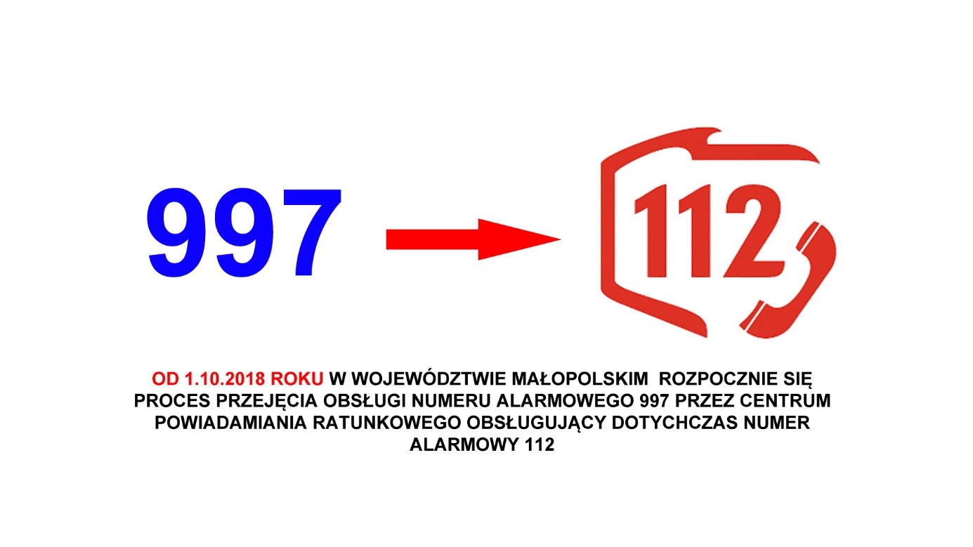 Od 1 października 2018 roku o godz. 10 rozpocznie się proces przejmowania obsługi numeru alarmowego 997 przez Centrum Powiadamiania Ratunkowego w Krakowie obsługujący obecnie numer alarmowy 112. Proces ten jest wynikiem udanego pilotażu jaki został przeprowadzony w województwie śląskim w 2017 roku.