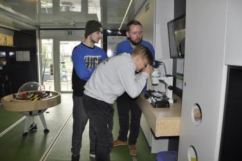 Mobilna wystawa "Naukowiej" mieści się na 13-metrowej platformie. Ten niezwykły pojazd jest w trasie od początku lutego. W ciągu najbliższych czterech lat odwiedzi wszystkie 182 małopolskie gminy. Oznacza to, że wystawę odwiedzi co najmniej 75 tys. uczniów.