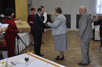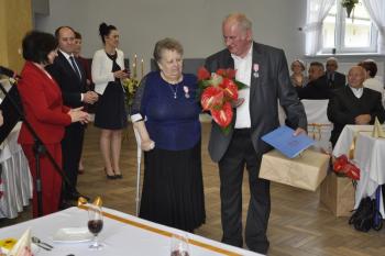 Pary, które obchodziły Złote Gody zostały odznaczone Medalami za Długoletnie Pożycie Małżeńskie nadawanymi przez prezydenta RP. Po toaście i zwyczajowym "100 lat" zespół "Brzezinianki" przedstawił okolicznościowy program dedykowany jubilatom.