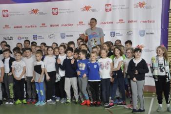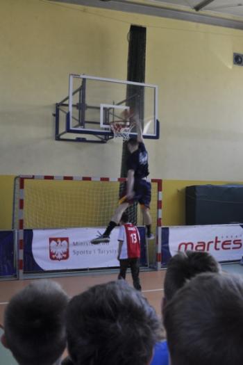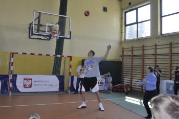 Kolejnym gościem był specjalista od koszykarskich wsadów Aleksander Maślanka, który podzielił się z młodymi grojczanami życiową pasją, prezentując prawdziwe akrobacje pod koszem. Młodzież nagradzała jego ewolucje wrzawą i brawami. A kiedy przeskakiwał nad trójką uczniów, nawet nauczyciele przecierali oczy ze zdumienia.