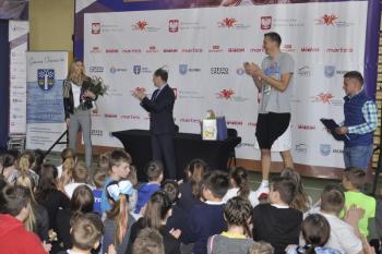Pierwszy Polak w NBA, najlepszej koszykarskiej lidze świata, spotkał się i trenował z uczniami Szkoły Podstawowej w Grojcu. Zachęcał do dbania o zdrowie, do większej aktywności fizycznej, ale najczęściej powtarzał, żeby spełniać marzenia i nie poddawać się.