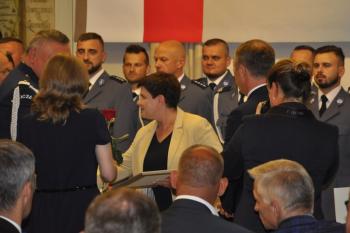 W sali reprezentacyjnej Muzeum Zamek w Oświęcimiu gościli była premier RP, posłanka do Parlamentu Europejskiego Beata Szydło i wojewoda małopolski Piotr Ćwik, przedstawiciele małopolskich samorządów, wymiaru sprawiedliwości, wojska, duchowieństwa, oświaty i oczywiście dowództwa i związków zawodowych Policji. Gminę Oświęcim reprezentował wójt Mirosław Smolarek.