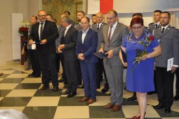 Jubileuszowe obchody stały się okazją do wręczenia funkcjonariuszom Policji medali, odznaczeń i awansów na wyższe stopnie służbowe. Z kolei przedstawiciele centralnych, wojewódzkich i samorządowych władz przyjęli od mundurowych podziękowania i wyróżnienia. W imieniu Gminy Oświęcim okolicznościowy medal z rąk inspektora Roberta Chowańca, komendanta powiatowego Policji w Oświęcimiu, odebrał wójt Mirosław Smolarek.