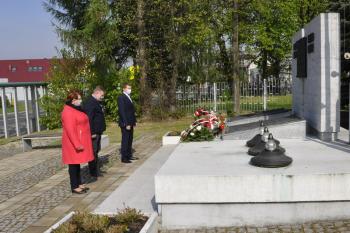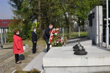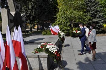 Wójt Mirosław Smolarek, przewodnicząca Rady Gminy Bernardyną Bryzek i zastępca wójta Halina Musiał w imieniu mieszkańców gminy Oświęcim złożyli kwiaty przy Pomniku Poległych i Pomordowanych Mieszkańców Poręby Wielkiej oraz na symbolicznym Grobie Nieznanego Żołnierza na Placu Tadeusza Kościuszki w Oświęcimiu.