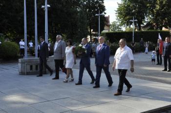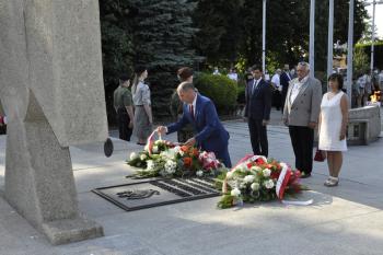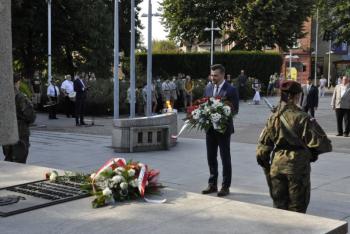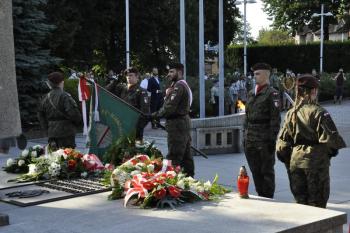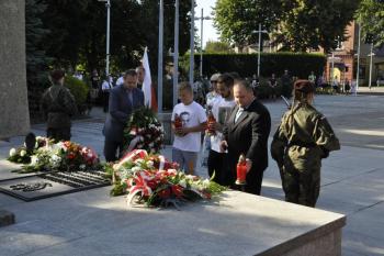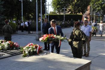 Uczestnicy miejskich obchodów 76. rocznicy Powstania Warszawskiego oddali hołd żołnierzom i mieszkańcom stolicy, składając wieńce na Pomniku Nieznanego Żołnierza na placu Tadeusza Kościuszki w Oświęcimiu.