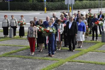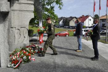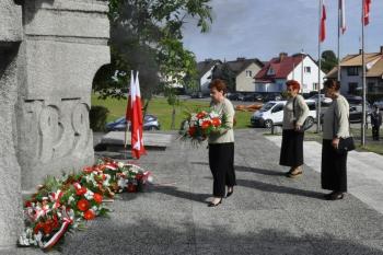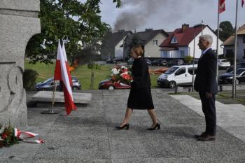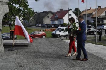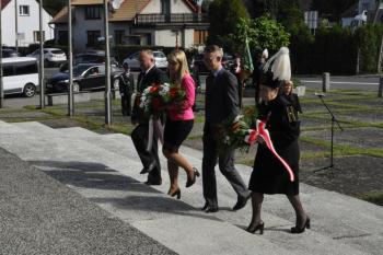 W asyście pocztów sztandarowych kwiaty przy pomniku upamiętniającym polskich żołnierzy złożyli wójt Mirosław Smolarek i jego zastępca Halina Musiał oraz delegacje: władz powiatowych ze starostą Marcinem Niedzielą, radnych Gminy Oświęcim z przewodniczącą Bernardyną Bryzek i oświęcimskiego magistratu.