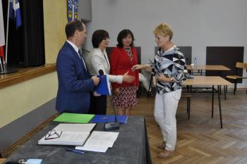 Wanda Baran, Agata Dybczak, Wanda Heród, Halina Kobosko, Krystyna Korczyk, Halina Stachura, Józef Bryniarski, Albin Kojm i Stanisław Pędziwiatr odebrali z rąk wójta Mirosława Smolarka, przewodniczącej Rady Gminy Bernardyny Bryzek i zastępcy wójta Haliny Musiał zaświadczenia o wyborze.