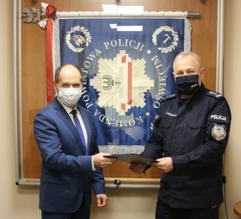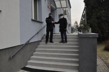 11 stycznia komendant Robert Chowaniec podziękował wójtowi Mirosławowi Smolarkowi, a za jego pośrednictwem także radnym Gminy Oświęcim, za dofinansowanie remontu schodów wejściowych do oświęcimskiej komendy Policji. Przypomniał też o udzielanym przez nasz samorząd wsparciu oświęcimskiej jednostki, m.in. o finansowej pomocy na zakup radiowozów i gminnej dotacji na dodatkowe patrole mundurowych.