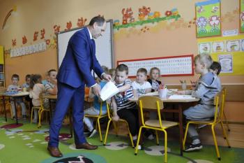 Przed południem samorządowe przedszkola odwiedził wójt Mirosław Smolarek z bagażnikem pełnym łakoci. Częstował maluchy w przedszkolnych salach, ogródkach i na placach zabaw. I chociaż to była również okazja, żeby zagadnąć dorosłych o bieżące sprawy, to najważniejszymi rozmówcami podczas tych wizyt byli najmłodsi.