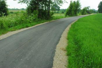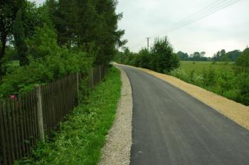 Wykonano nawierzchnię jezdni z asfaltobetonu na odcinku 438 mb. Odwodnienie drogi wykonano za pomocą spadków poprzecznych i podłużnych. Wzmocnieniu uległa podbudowa drogi. Wykonano obustronne pobocza oraz zabezpieczono skarpę nasypu drogi.