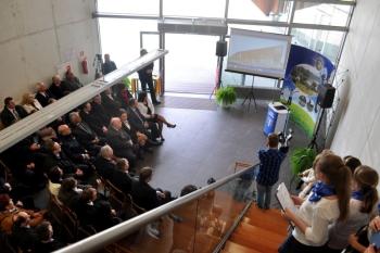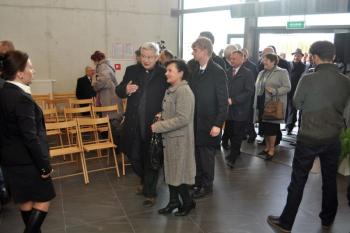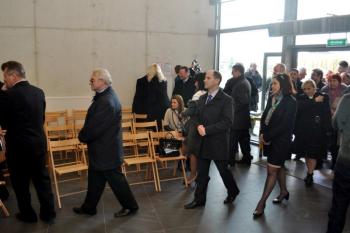 Pojawili się także projektanci futurystycznej bryły obiektu i jego budowniczy, lokalni przedsiębiorcy, duchowni, szefowie gminnych instytucji, radni i sołtysi. Stronę rządową reprezentował wicewojewoda małopolski Andrzej Harężlak.